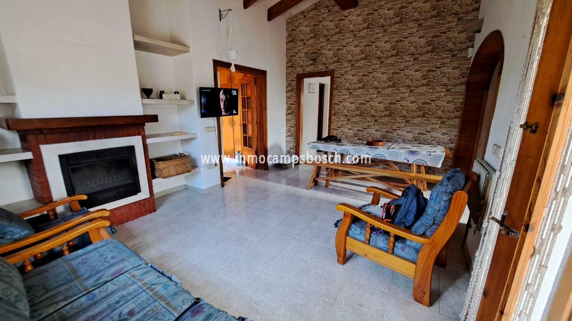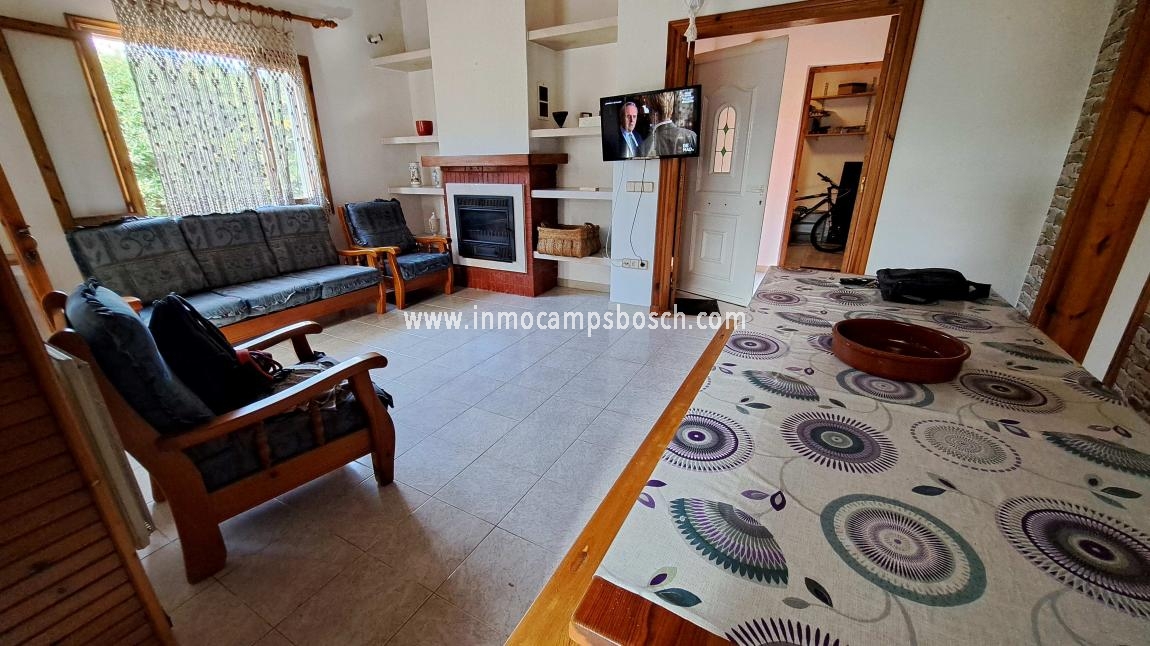 Dispone de tres dormitorios con armarios empotrados, baño completo, salón-comedor con chimenea, cocina, terraza cubierta y cerrada, lavadero, garaje y piscina.